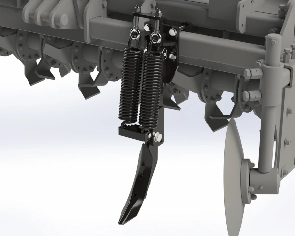 Its compact structure and wider shaping angle promote fast and uniform soil distribution, minimizing draft resistance and optimizing sowing operations over large surface areas.