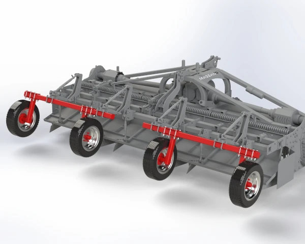 The front wheels, combined with the bed former shaper, ensure precise adjustment of working depth. Unlike rear wheels, they do not interfere with the rollers and allow independent adjustment between roller and wheels