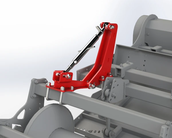 The roller-to-machine mounting brackets allow secure attachment of the roller to the bed former shaper, with dedicated configurations depending on the type of bed-forming shaper and the version of roller used. They ensure full compatibility and operational stability, guaranteeing correct roller installation according to the chosen setup, for precise, efficient work free from mechanical interference.